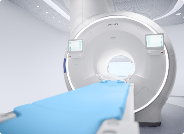 Die Magnetresonanztomographie oder auch Kernspintomographie (MRT) ist ein modernes und seit vielen Jahren etabliertes Schnittbildverfahren zur Untersuchung aller Körperregionen. Um ein Bild zu erzeugen, werden hierbei keine Röntgenstrahlen, sondern ein starkes Magnetfeld eingesetzt, das eine hohe räumliche Auflösung und exzellente Kontrastdarstellung möglich macht.